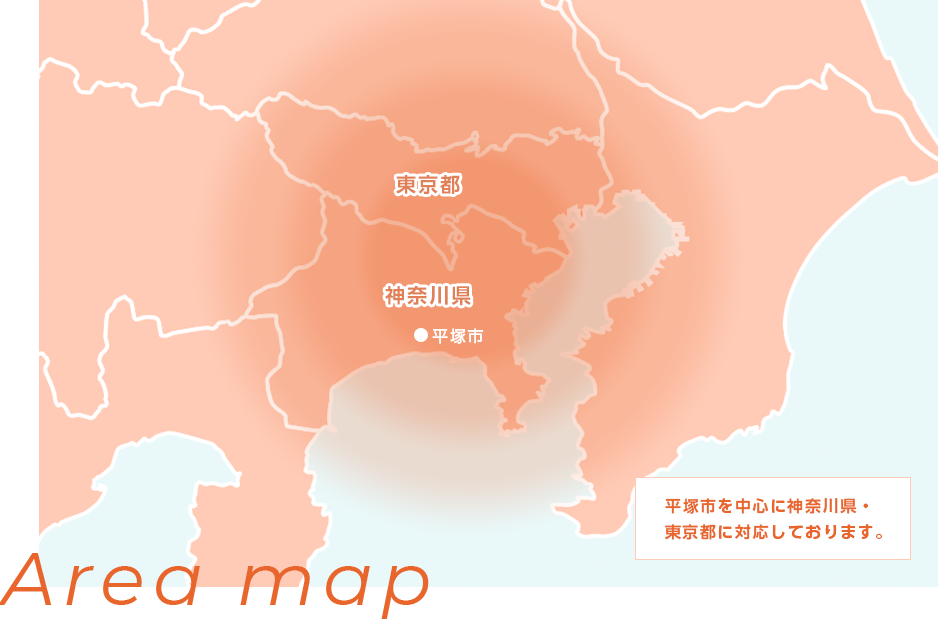 神奈川県横浜市緑区を拠点に神奈川県、東京都、千葉県、埼玉県で対応しています。